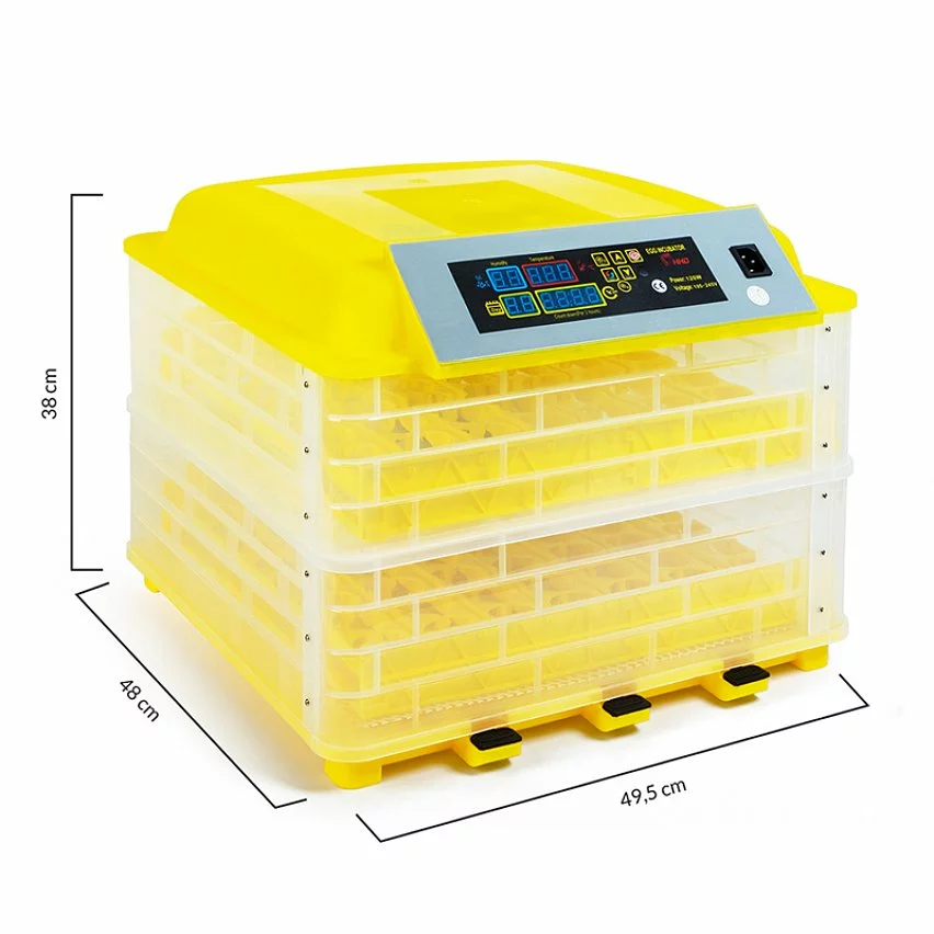 Certaines espèces de poules sont plus maternelles que d’autres et il arrive parfois que quelques races délaissent leurs œufs une fois pondus. Il est donc recommandé dans ce cas d’utiliser des incubateurs, aussi appelés couveuses, pour permettre aux œufs d’éclore. Avec cette couveuse automatique capable d’accueillir jusqu’à 112 œufs, vous pouvez très rapidement agrandir votre élevage en gagnant du temps. Idéal pour une meilleure couvaison, l’incubateur vous permet d’obtenir un taux d’éclosion plus sûr grâce à un suivi plus précis et minutieux. La couveuse automatique est fabriquée avec une base plastique transparente vous permettant d’apercevoir en continu la transformation des œufs. Grâce à ses 112 emplacements, l’incubateur propose une capacité d’accueil XXL allant jusqu’à 112 œufs de poules. Chaque socle pour œufs mesure 4,4 CM.Parfaite pour les éleveurs expérimentés ou recherchant de grande capacité d’élevage, la couveuse dispose de 4 écrans LED afin de contrôler et de modifier certains réglages selon la catégorie d’œufs couvés : – Réglable de la température allant de 20 à 50°- Réglage du taux d’humidité (hygrométrie) – Affichage du décompte avant rotation automatique (toutes les 2H)- Affichage du jour d’incubationGrâce à tous ces paramètres, l’air pourra circuler de façon homogène et les conditions idéales de couvaison seront reproduites. Comme son nom l’indique, la couveuse gère seule le retournement des œufs sans que vous ayez à vous en inquiéter. Ainsi, toutes les 2H, les œufs seront oscillés de droite à gauche afin que l’embryon ne se colle pas à la membrane de l’œuf. Grâce à ce système de couvaison artificielle, vos petits poussins naîtront après les 21 jours d’incubation. Laissez-les encore une journée dans leur couveuse afin de laisser sécher leur plumage et qu’ils prennent quelques forces avant de rejoindre vos autres poules. Dimensions de l’incubateur automatique 112 œufs- Dimensions totales : Longueur 47 CM x largeur 49,5 CM x Hauteur 38 CM- Dimensions des écrans : 2,5 x 2 CM – 4 x 2 CM – 5 x 2 CM- Dimension du socle d’un œuf : 4,4 CM- Température réglable de 20 à 50°- Capacité : 112 œufs de poules (14 rangés de 8 socles avec 2 étages de 7 rangés)- 1 éprouvette de 15 CL- Puissance 120W – Tension 220V- Certifications CE – EMC – RoHS – LVD