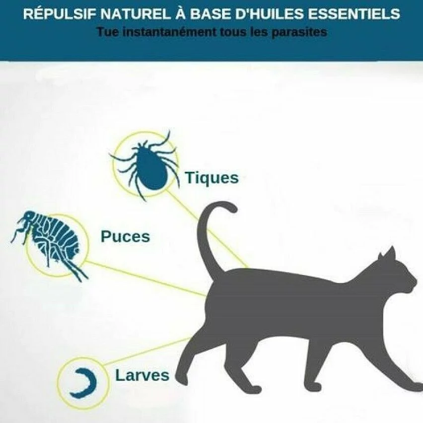- Puces, larves, tiques, vers et même moustiques, ce collier éradique et repousse tous les insectes qui voudraient parasiter votre chien ou votre chat.